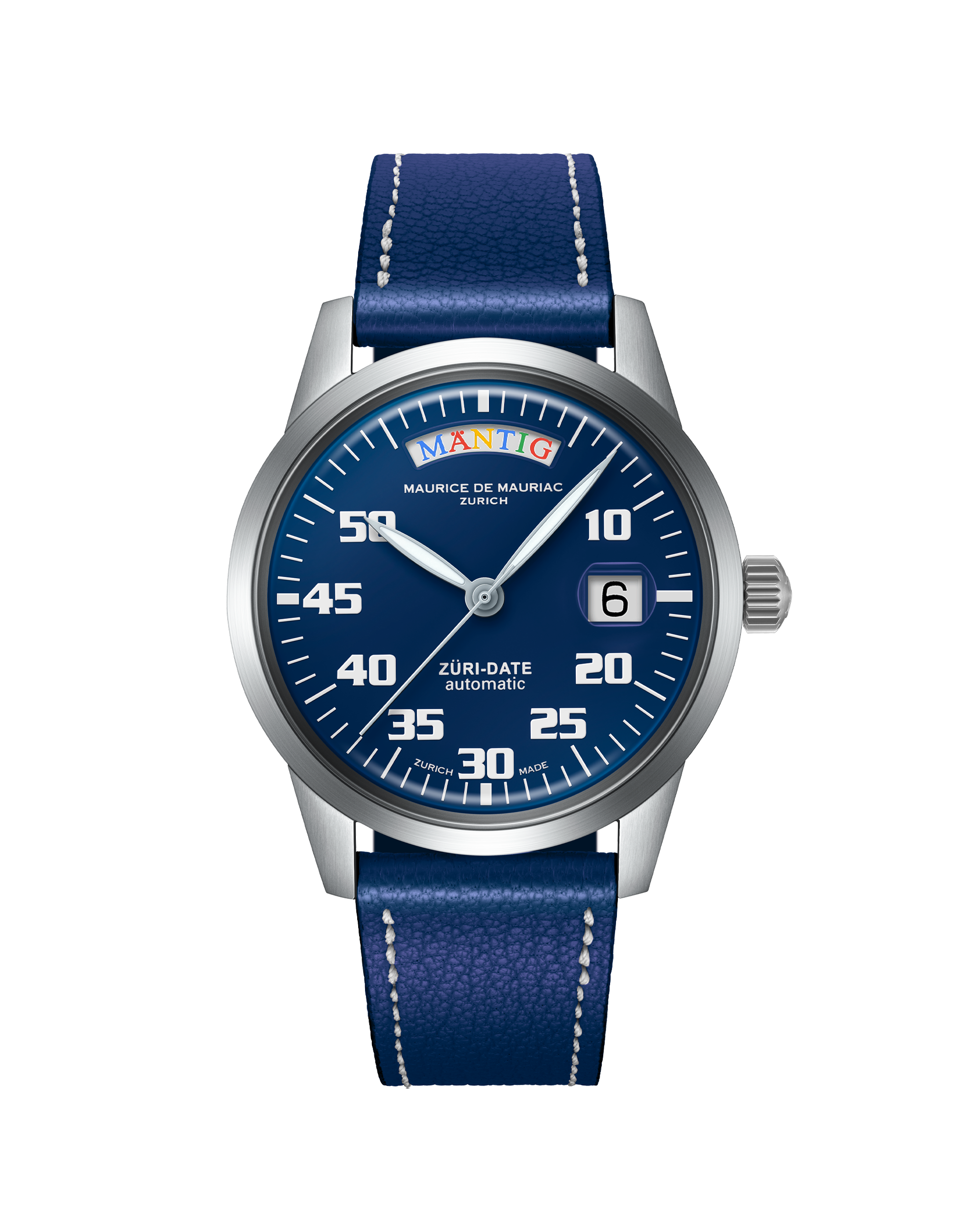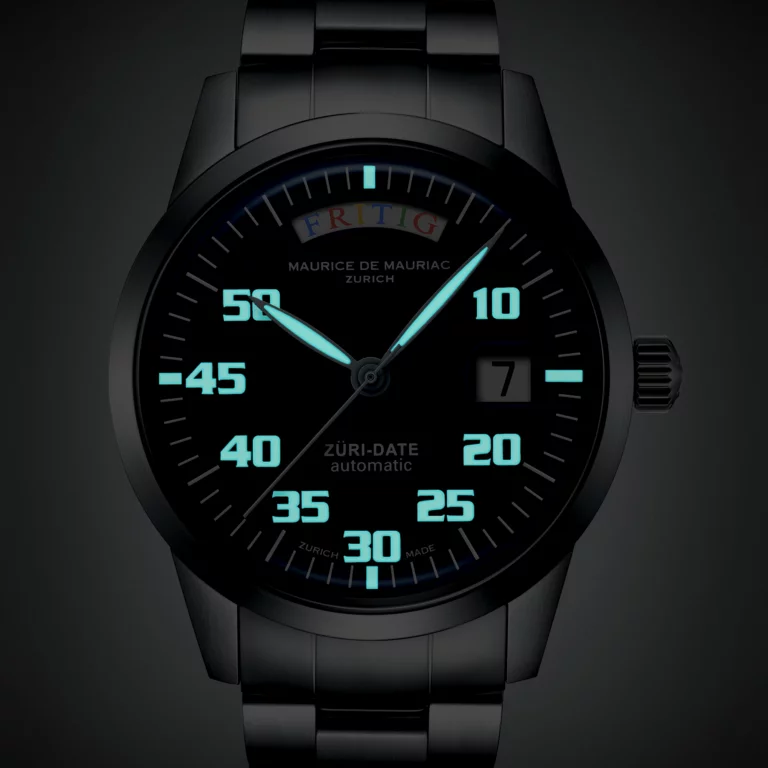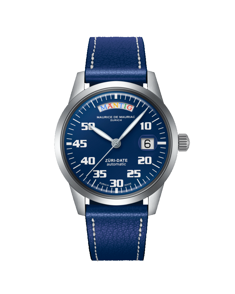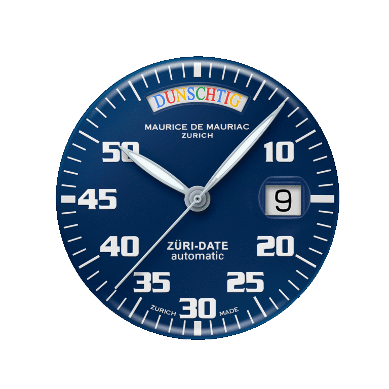 Ein besonderes Stück für Menschen, die auf der Suche nach dem Einzigartigen sind. Wo immer Sie diese Uhr tragen, tragen Sie den Zürcher Geist mit sich. Sie zeigt die Tage ausschliesslich in Schweizerdeutsch an, genauer gesagt im Zürcher Dialekt. Die Basis dieses mittelgrossen Zeitmessers ist die Automatic Modern. Entwickelt von Daniel Dreifuss, haben seine Söhne – die Watchbros – dieser Uhr das Sprechen auf Schweizerdeutsch beigebracht. Sie wird jeden Tag Ihrer Woche zu einem bunten und fröhlichen Tag machen.