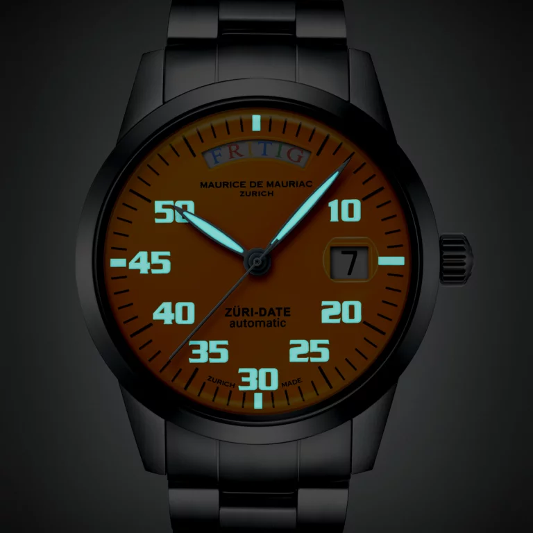 Ein besonderes Stück für Menschen, die auf der Suche nach dem Einzigartigen sind. Wo immer Sie diese Uhr tragen, tragen Sie den Zürcher Geist mit sich. Sie zeigt die Tage ausschliesslich in Schweizerdeutsch an, genauer gesagt im Zürcher Dialekt. Die Basis dieses mittelgrossen Zeitmessers ist die Automatic Modern. Entwickelt von Daniel Dreifuss, haben seine Söhne – die Watchbros – dieser Uhr das Sprechen auf Schweizerdeutsch beigebracht. Sie wird jeden Tag Ihrer Woche zu einem bunten und fröhlichen Tag machen.