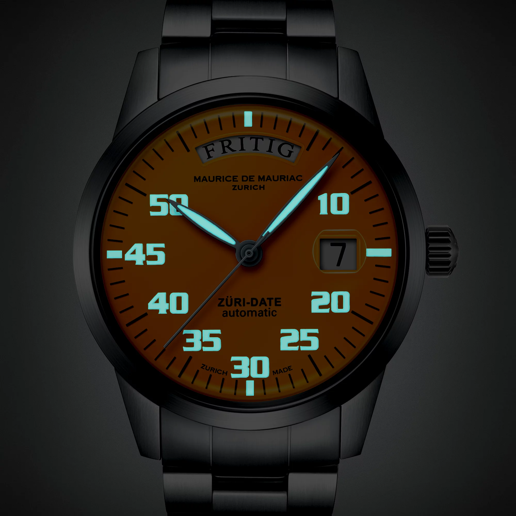 Besonderes für Menschen, die das Einzigartige suchen. Wo Sie mit dieser Uhr sind, da ist Zürich. Sie zeigt die Tage exklusiv auf Schweizerdeutsch an. Die Basis dieser etwas kleineren Uhr ist die Automatik Modern. Von Daniel Dreifuss entwickelt, haben seine Söhne, die Watchbros, dieser Uhr Schweizerdeutsch gelehrt und ihre Zürcher Wurzeln sichtbar gemacht. Wem der Ort der Zeit wichtig ist, wird in dieser Uhr einen treuen Begleiter finden.