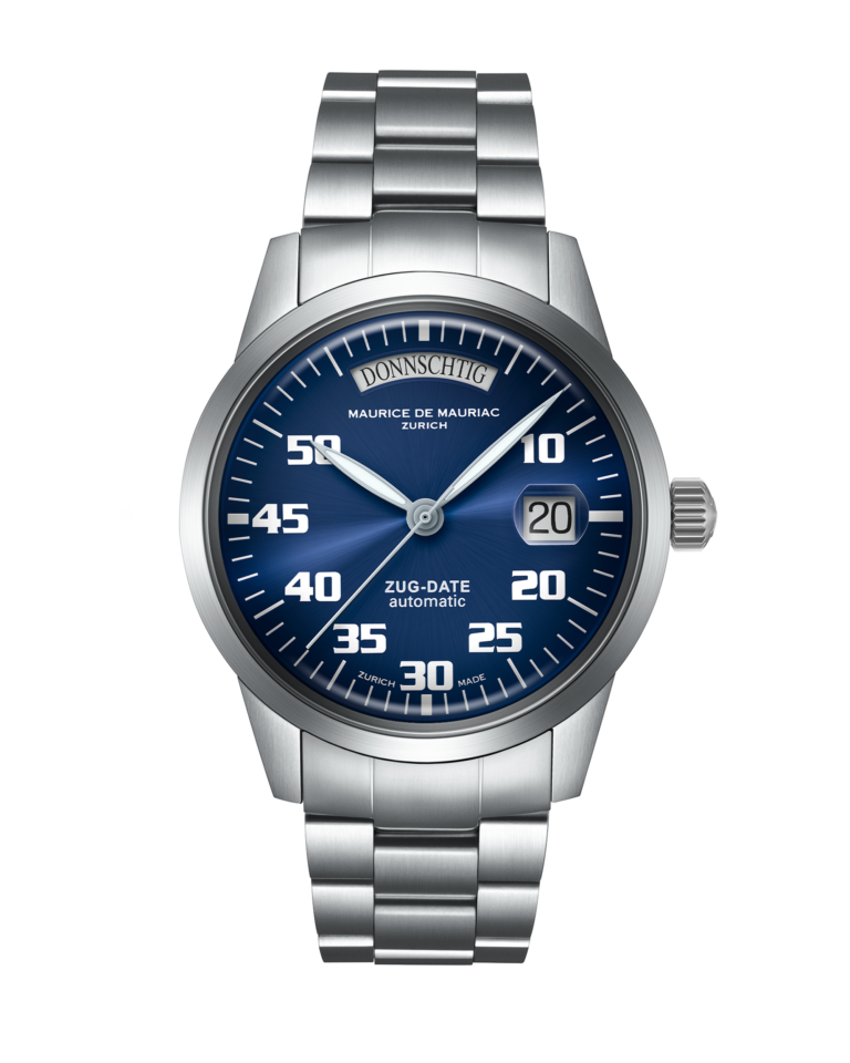 Besonderes für Menschen, die das Einzigartige suchen. Wo Sie mit dieser Uhr sind, da ist Zug. Sie zeigt die Tage exklusiv auf Schweizerdeutsch an. Die Basis dieser etwas kleineren Uhr ist die Automatik Modern. Von Daniel Dreifuss entwickelt, haben seine Söhne, die Watchbros, dieser Uhr Schweizerdeutsch gelehrt. Wem der Ort der Zeit wichtig ist, wird in dieser Uhr einen treuen Begleiter finden.