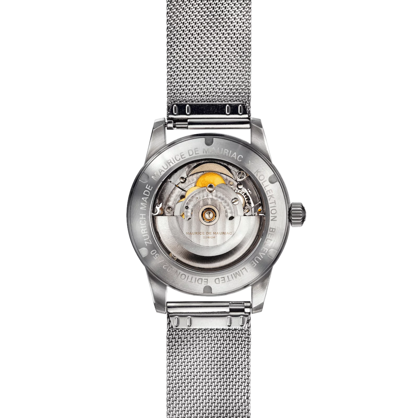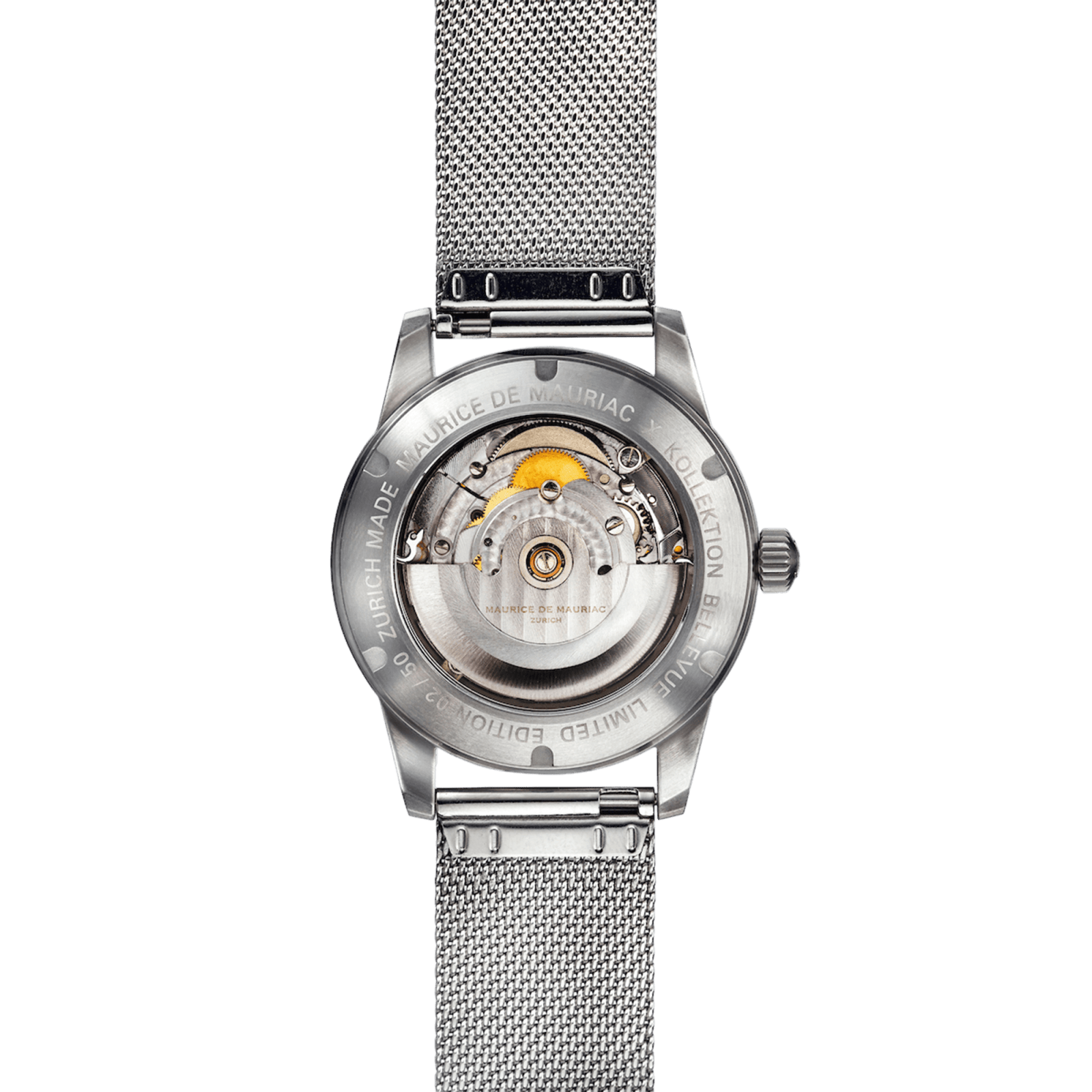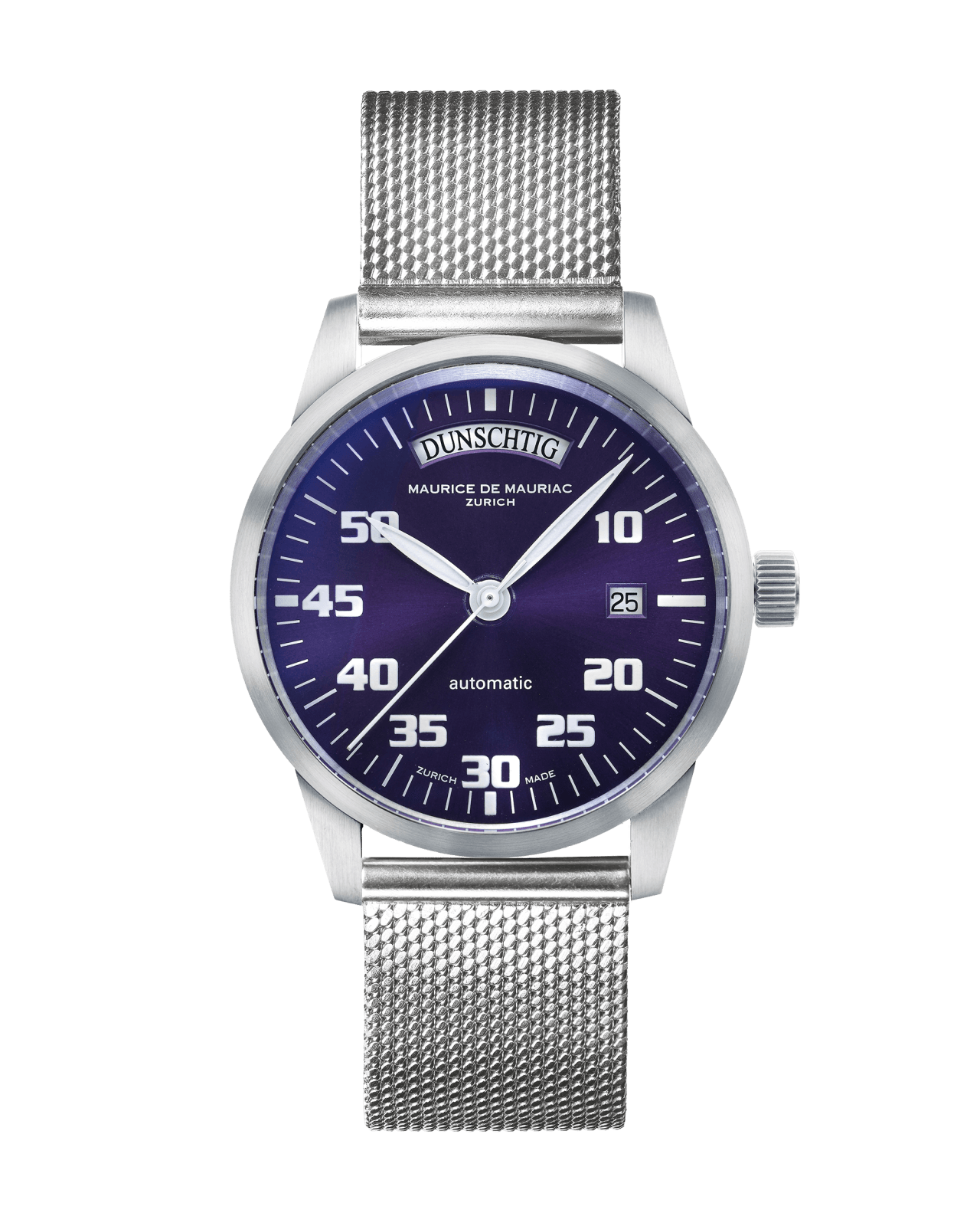 Besonderes für Menschen, die das Einzigartige suchen. Wo Sie mit dieser Uhr sind, da ist Zürich. Sie zeigt die Tage exklusiv auf Schweizerdeutsch an. Die Basis dieser etwas kleineren Uhr ist die Automatik Modern. Von Daniel Dreifuss entwickelt, haben seine Söhne, die Watchbros, dieser Uhr Schweizerdeutsch gelehrt und ihre Zürcher Wurzeln sichtbar gemacht. Nun könnte diese Uhr in ihrem faszinierenden titanblau an vielen Armen sanft schimmern, wenn sie nicht auf 50 Uhren weltweit limitiert wäre. Wem der Ort der Zeit wichtig ist, wird in dieser Uhr einen treuen Begleiter finden.