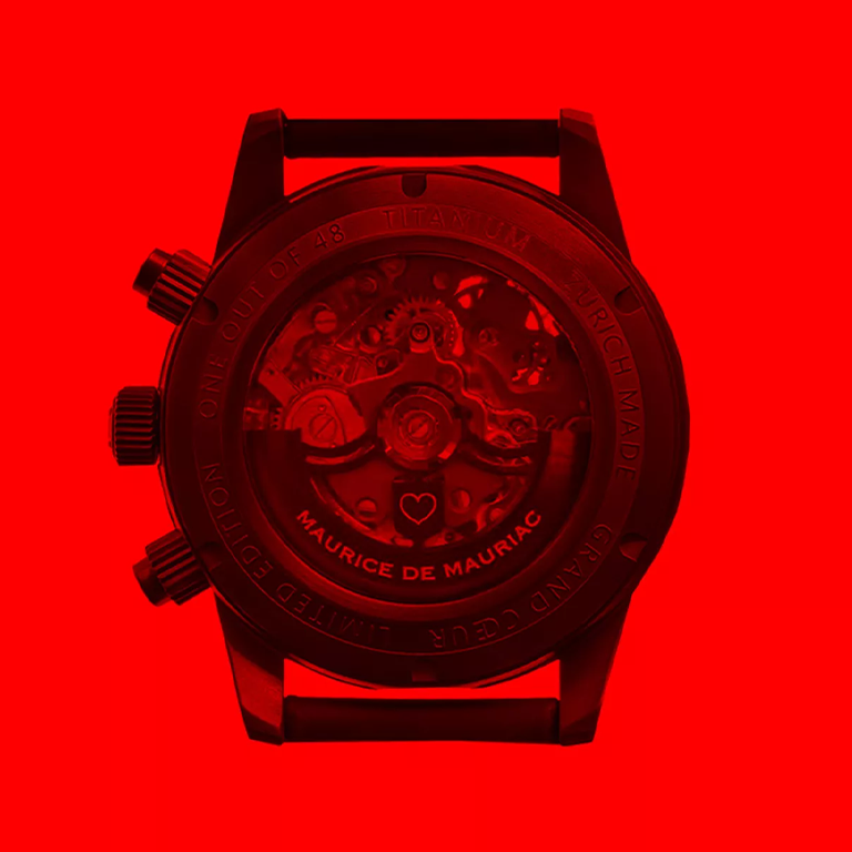 Die WatchBros haben die Grand Cœur zum Leben erweckt. In ihr schlägt das Leben mit blutrotem Herzen. Die Grand Cœur lebt von den Genen des Gründers von Maurice de Mauriac und der Kraft der Jugend seiner Söhne. Die Grand Cœur hat ein aussergewöhnliches Manufaktur-Uhrwerk mit transparenter Architektur und einem einzigartig roten Glasboden. Die Wirkung eines schlagenden Herzens der rot durchleuchteten Unruh lässt Uhrenliebhaber atemlos zurück. Wer die Uhr in Händen hält, fühlt die Meisterschaft, wird ehrfürchtig und spürt, dass man mit der Uhr nicht die Zeit, sondern das junge, das pulsierende Leben besitzt. Limitiert ist die Uhr auf 48 Stück. Die Zahl steht für den Ort, an dem jede Grand Cœur zum Leben erweckt wird – in der Tödistraße 48 in Zürich. 48 schlagende Herzen, die für die Träger der Uhr schlagen. Eine Uhr und das Leben können kaum intensiver sein.