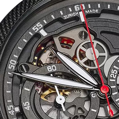 Wieviel Uhr kann man weglassen, um dem Werk zu huldigen. Da hat jeder Skeleton Fan seine eigene Toleranzgrenze. Bei uns wird bei Skeleton Uhren aber nicht nur weggelassen. Wir haben mit dem Einsatz von Glas und Farbe noch die Dimension des offenen Herzens hinzugefügt. Man sieht die Zeit nicht nur vergehen, man sieht sie leben. Diese Uhren leben mit Dir.