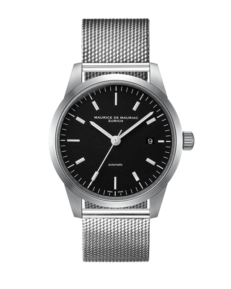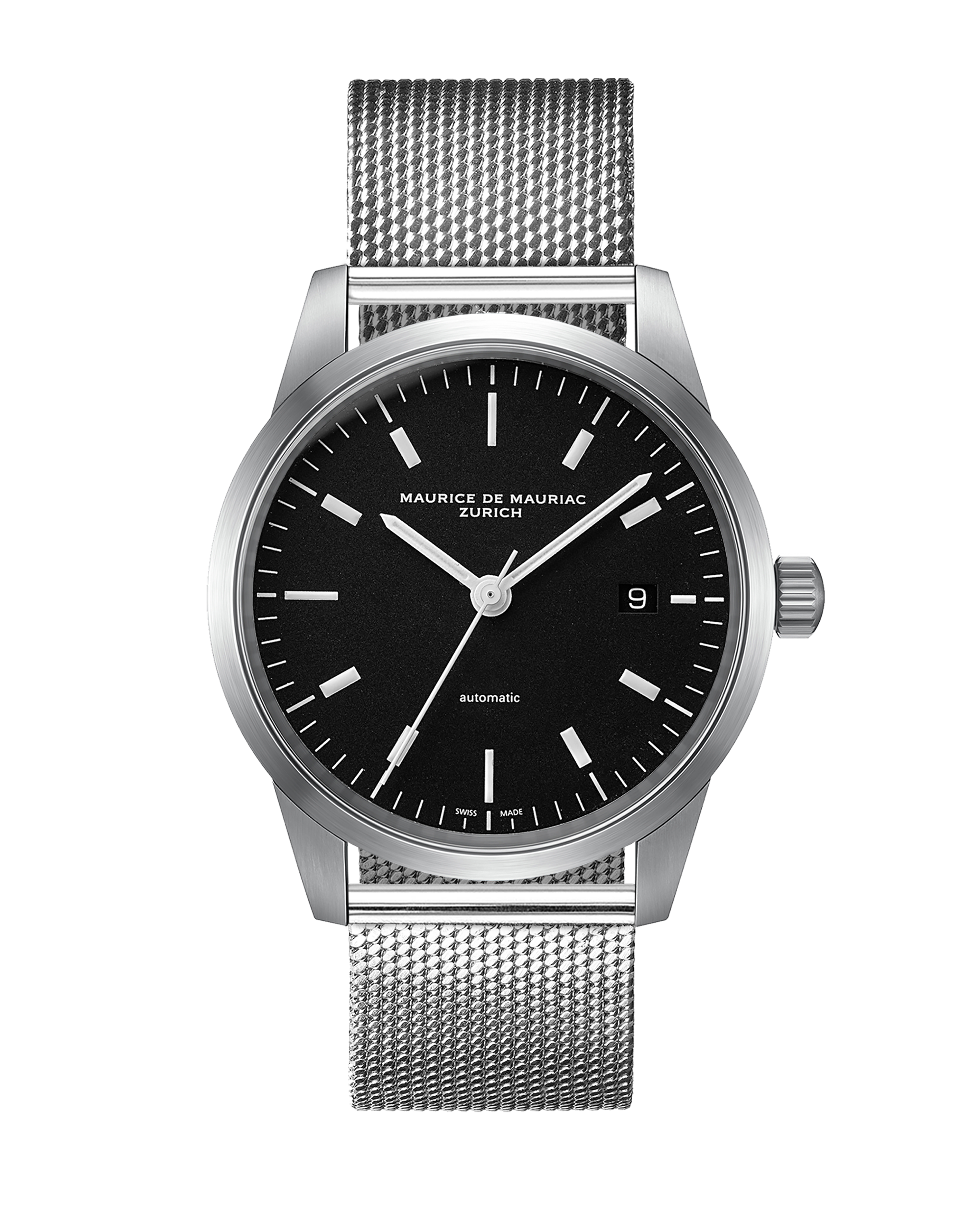 “Maurice de Mauriacs minimalistische und ultra-moderne L-Serie ist zu einem modernen Klassiker geworden, der in enger Zusammenarbeit mit dem Zürcher Visionär Fabian Schwaerzler – einem engen Freund von Gründer Dreifuss – entwickelt wurde. Der unverwechselbare Stil von Herrn Schwaerzler übersetzt sich mühelos von seinem gewohnten Oeuvre an Stühlen und Sofas zur Frage einer runden Uhr, deren Zweck und Funktionalität durch seinen puristischen Ansatz noch gesteigert wird.”