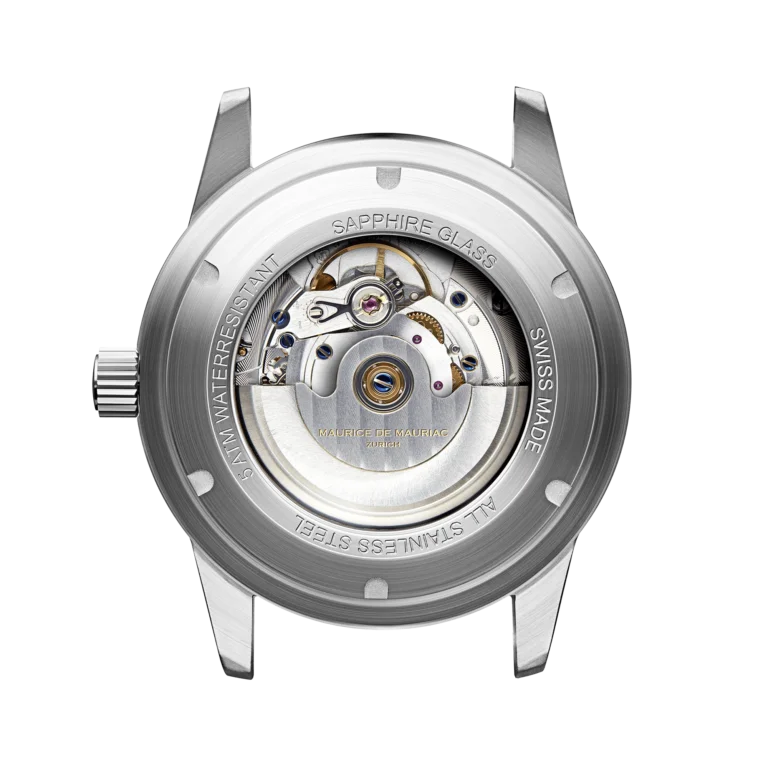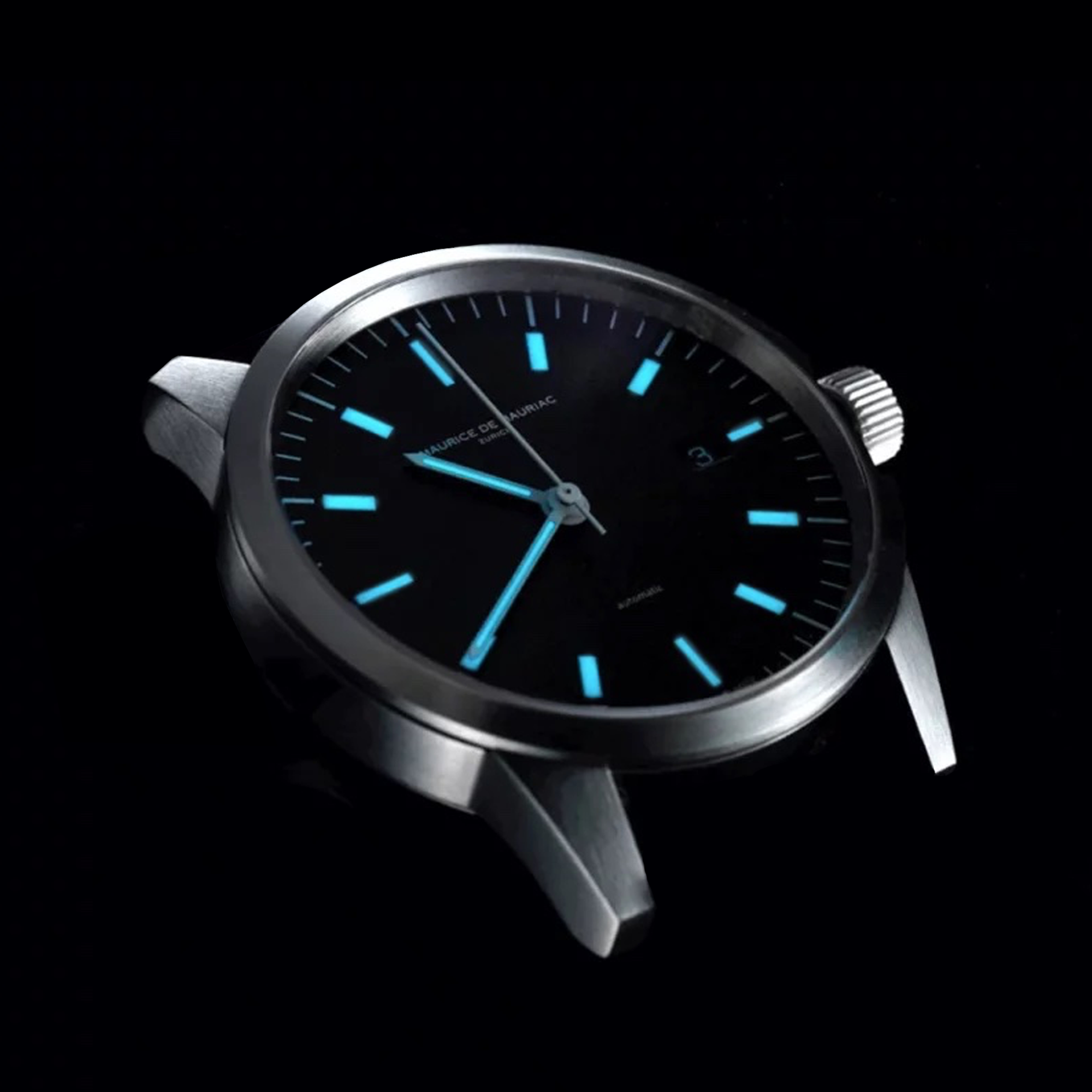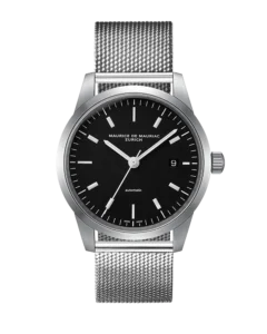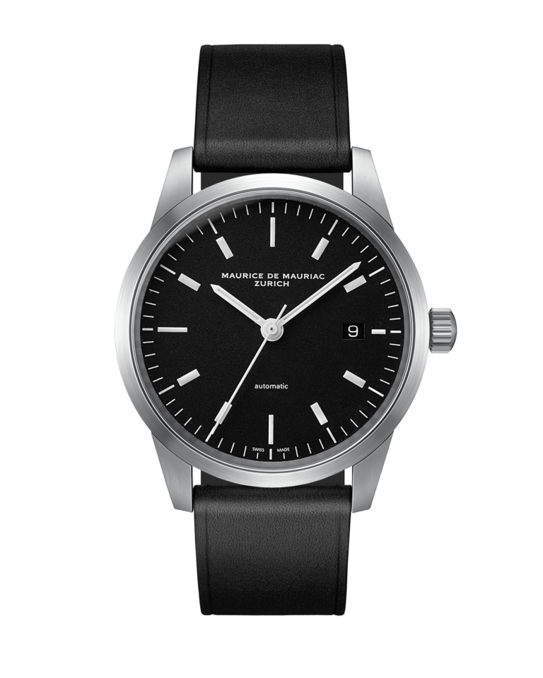 “Maurice de Mauriacs minimalistische und ultra-moderne L-Serie ist zu einem modernen Klassiker geworden, der in enger Zusammenarbeit mit dem Zürcher Visionär Fabian Schwaerzler – einem engen Freund von Gründer Dreifuss – entwickelt wurde. Der unverwechselbare Stil von Herrn Schwaerzler übersetzt sich mühelos von seinem gewohnten Oeuvre an Stühlen und Sofas zur Frage einer runden Uhr, deren Zweck und Funktionalität durch seinen puristischen Ansatz noch gesteigert wird.”
