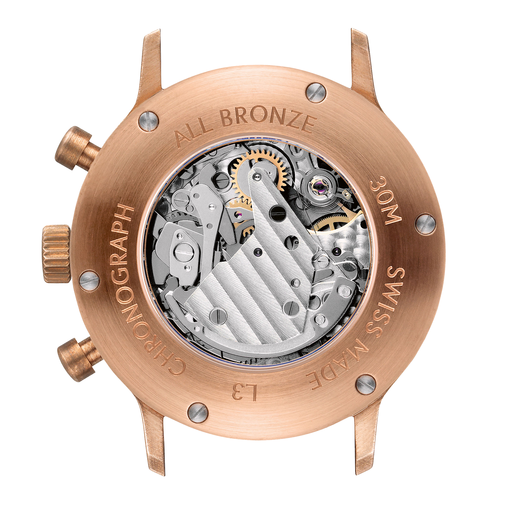 “Die Zürcher Schule der Konkreten hat Schwaerzler ebenso inspiriert, wie Klassiker dieses Uhrentyps, um sich von dort in gerader Linie weiter zu entwickeln – die L(inien)-Serie zu vollenden. Sie ist eine Klasse für sich geworden und damit würdiger Teil des Uhren-Triptychons der L-Serie. Wir nennen sie eine Cuff Watch, weil sie Manschette und Anzugärmel mit geringer Gehäusehöhe und hoch gewölbtem Glas sanft streicht”