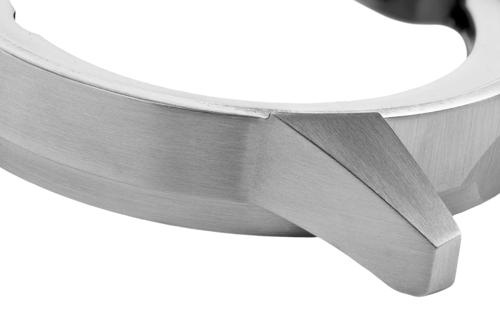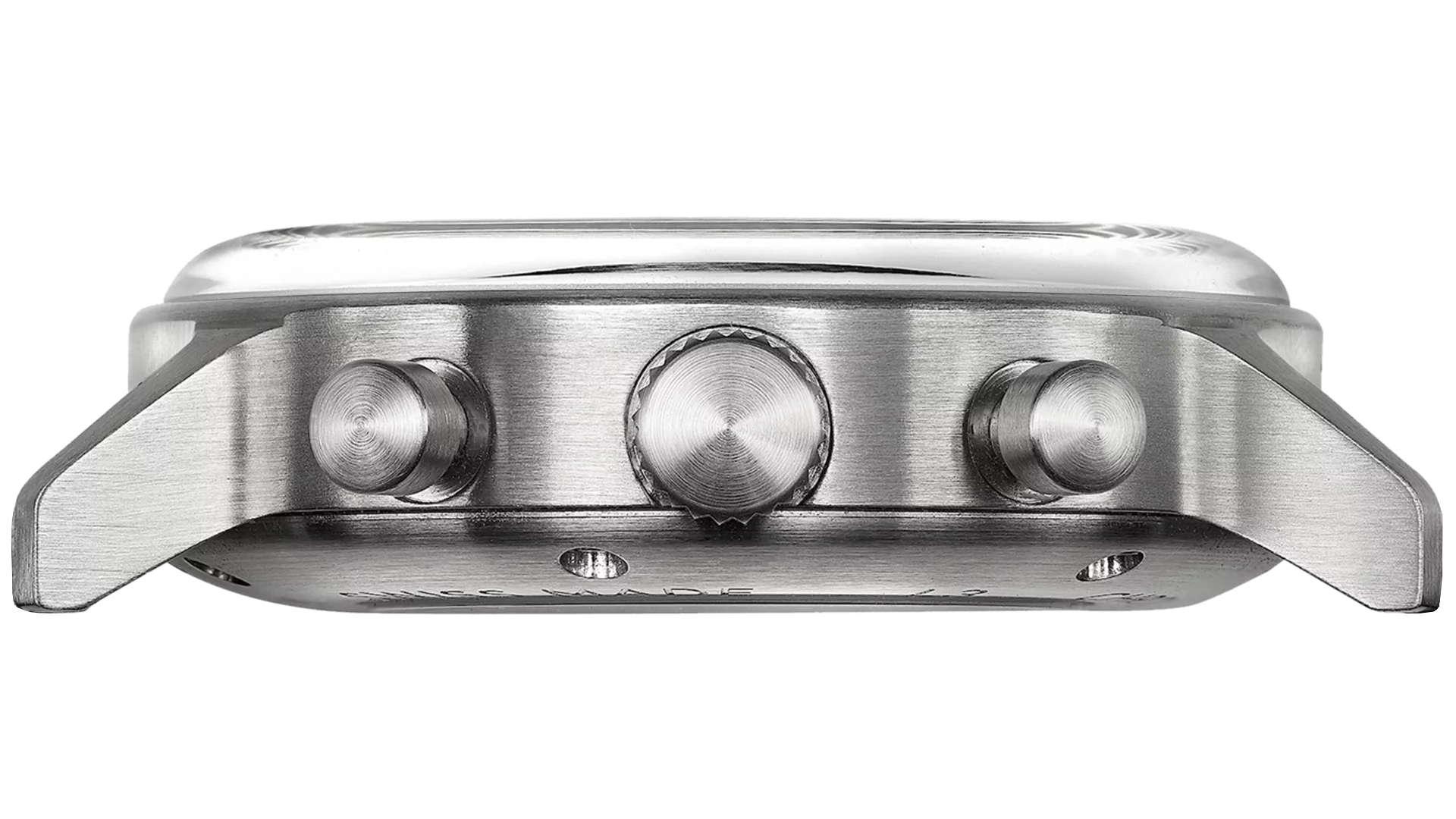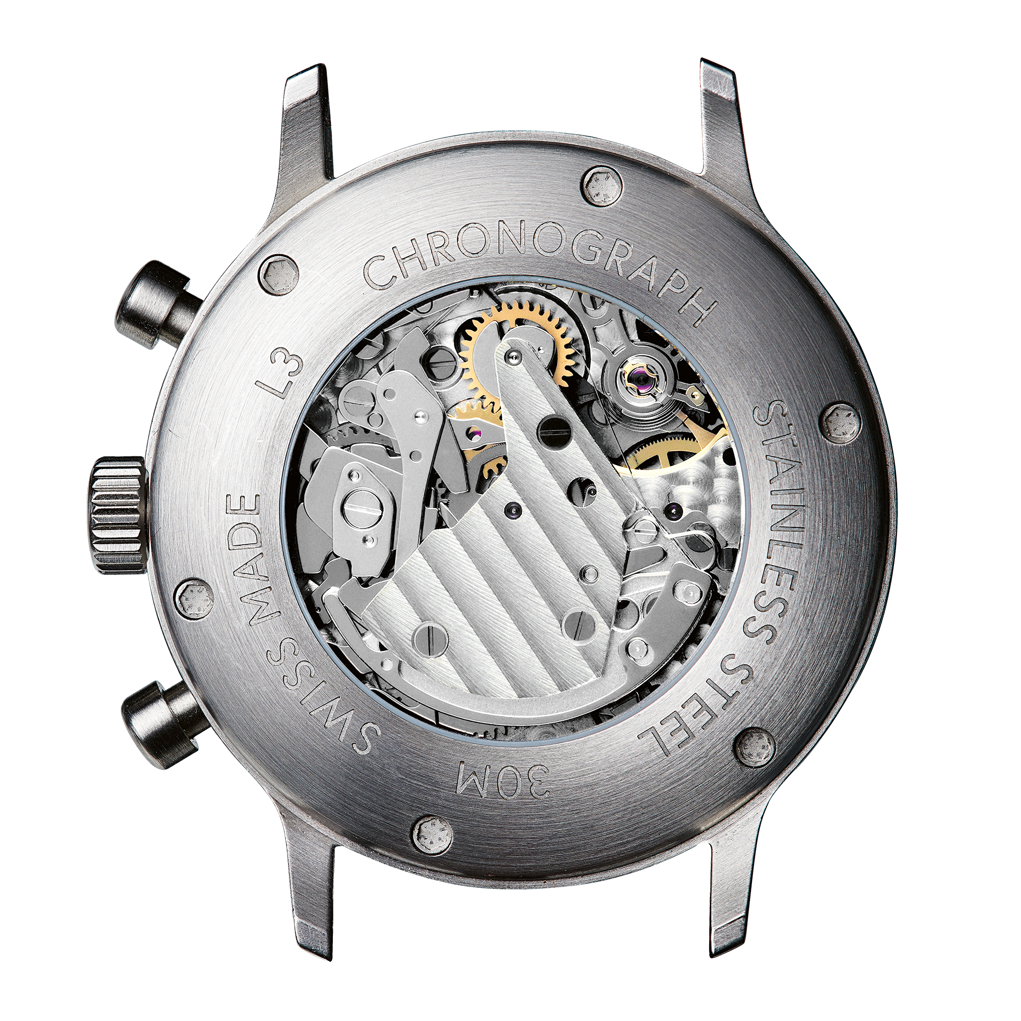 “Die Zürcher Schule der Konkreten hat Schwaerzler ebenso inspiriert, wie Klassiker dieses Uhrentyps, um sich von dort in gerader Linie weiter zu entwickeln – die L(inien)-Serie zu vollenden. Sie ist eine Klasse für sich geworden und damit würdiger Teil des Uhren-Triptychons der L-Serie. Wir nennen sie eine Cuff Watch, weil sie Manschette und Anzugärmel mit geringer Gehäusehöhe und hoch gewölbtem Glas sanft streicht”