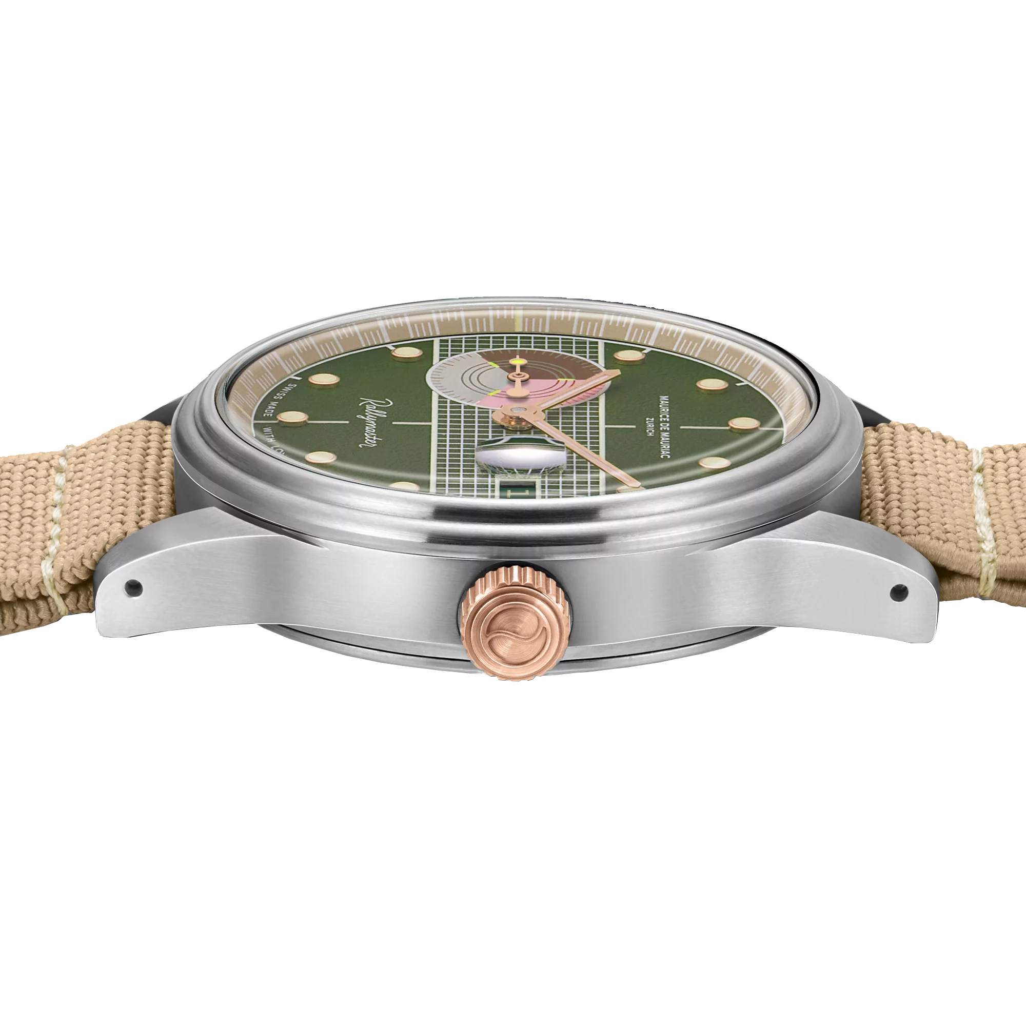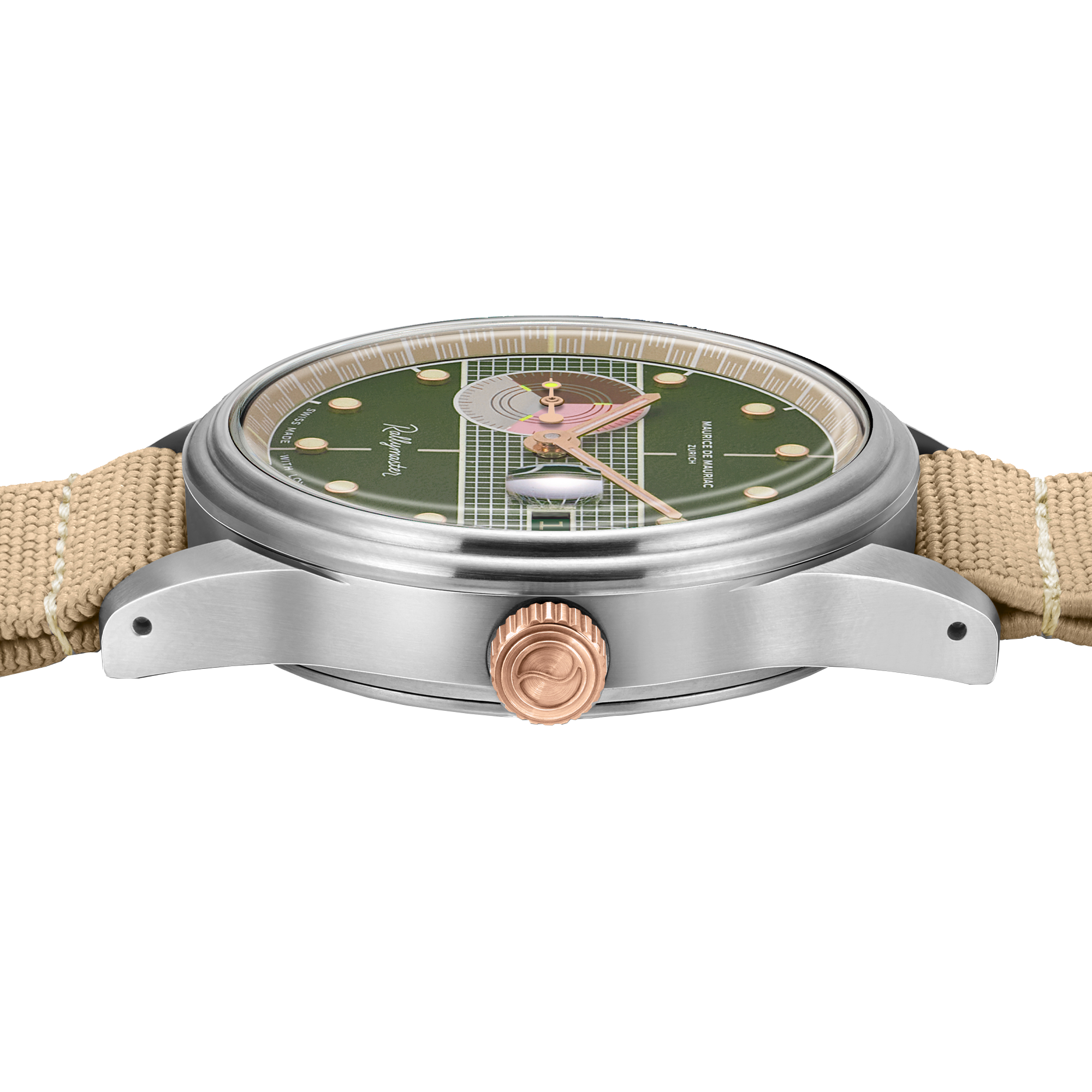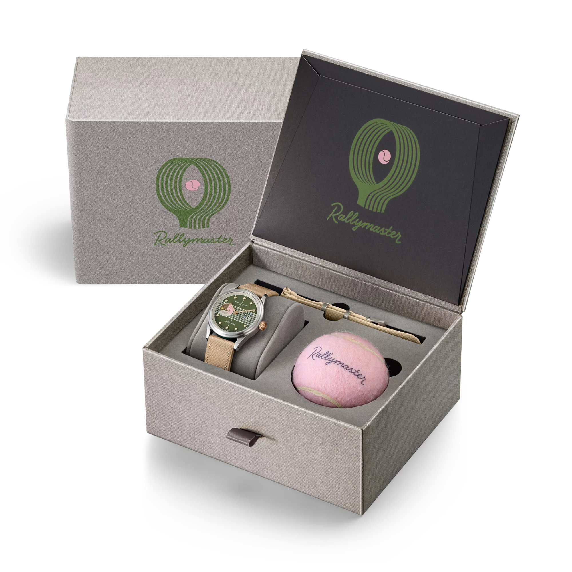 Racquet präsentiert seine dritte Uhr, die Rallymaster III, eine vom Tennissport inspirierte Armbanduhr, die in Zusammenarbeit mit uns entwickelt wurde. Die Grüne Farbe und die verschiedenen Armbandoptionen zelebrieren den Tennis-Lifestyle auf und neben dem Platz.