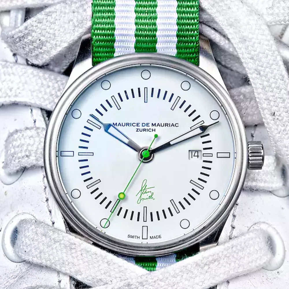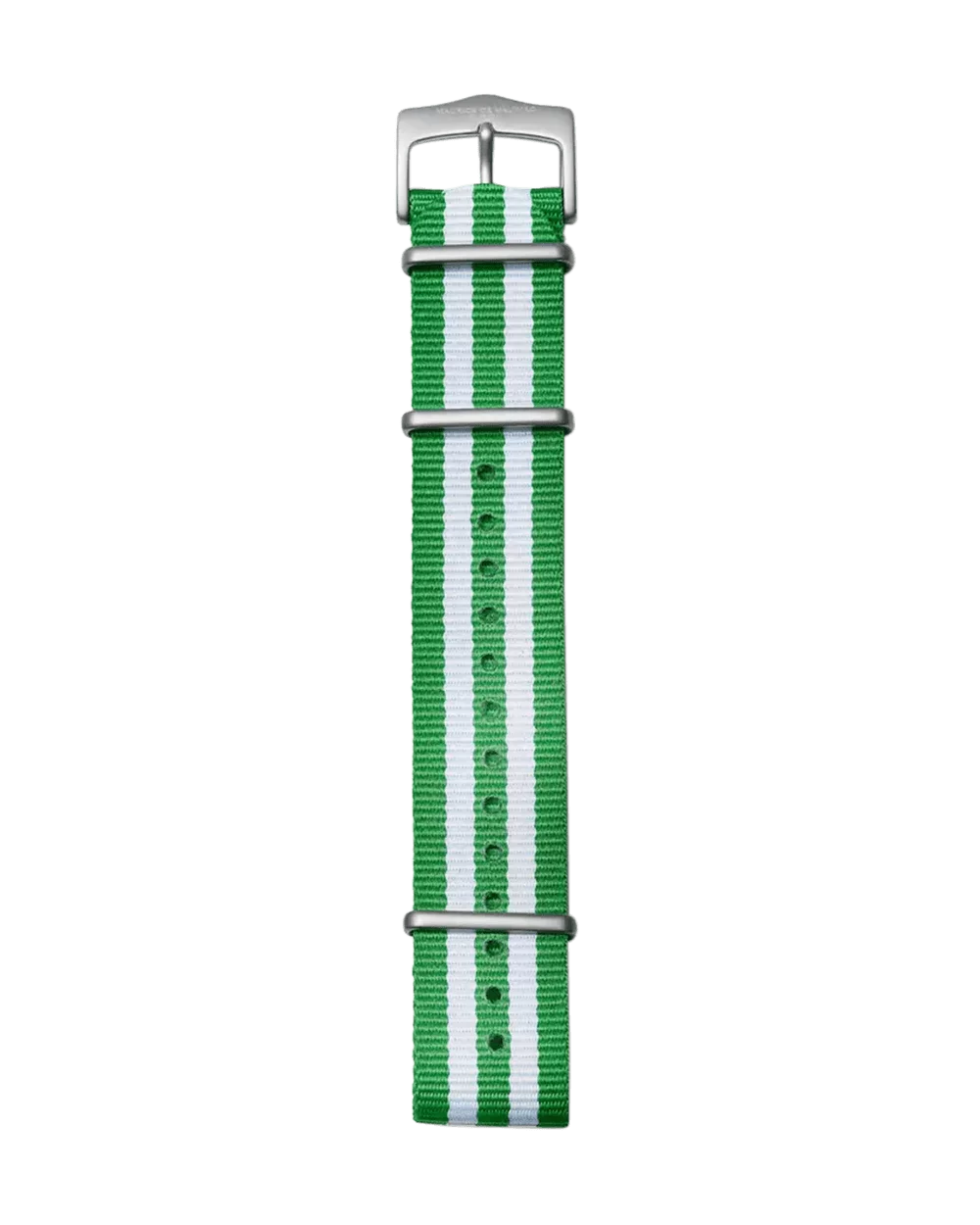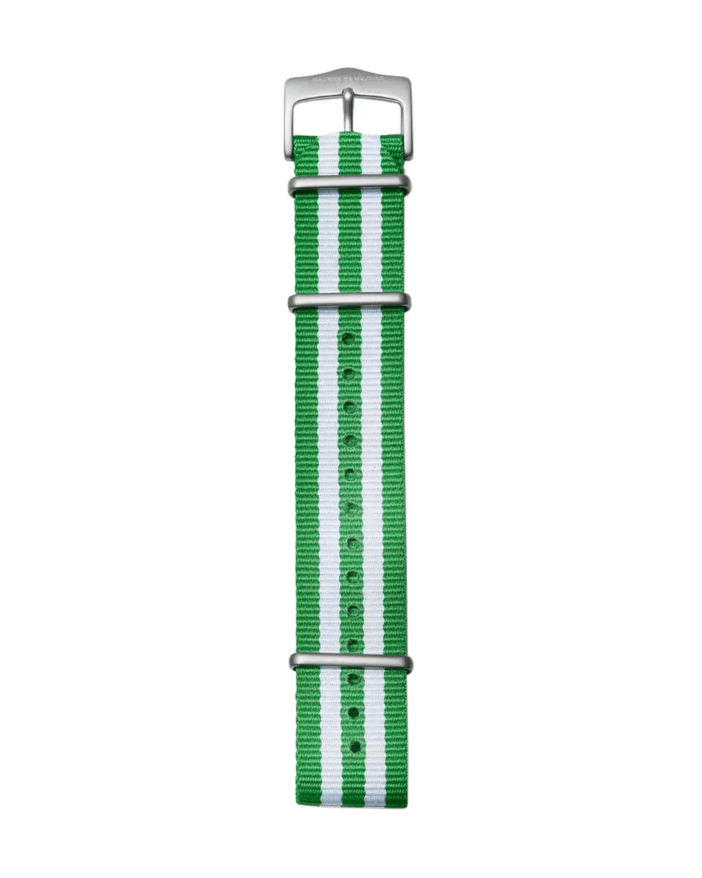 1973 wurde das erste Nato-Band dem britischen Verteidigungsministerium vorgestellt. Als Durchzugsarmband aus Nylon bietet es bei extremer Beanspruchung eine hohe Sicherheit gegen den Verlust der Uhr. NATO-Bänder geben jeder Uhr eine komplett andere Ausstrahlung. Maurice de Mauriac bietet eine der größten Auswahlen an NATO-Bändern in allen gängigen Breiten, extrem vielen Farben und Ausführungen.