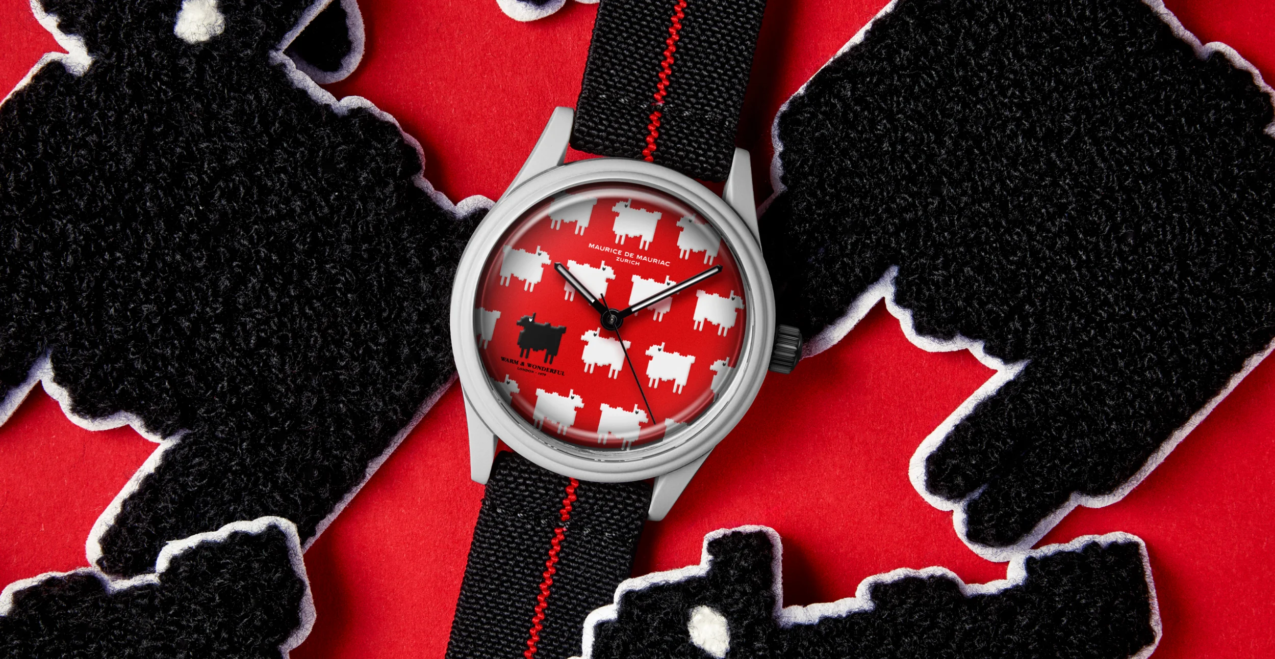 Das „Black Sheep“-Design hat nun auch Einzug in die Uhrenkultur gehalten, und zwar durch eine leuchtende Zusammenarbeit zwischen der Zürcher Uhrenmarke Maurice de Mauriac und Warm & Wonderful, um den 45. Geburtstag des ursprünglichen Strickwarenunternehmens zu feiern, das von Rowing Blazers wiederbelebt wurde.