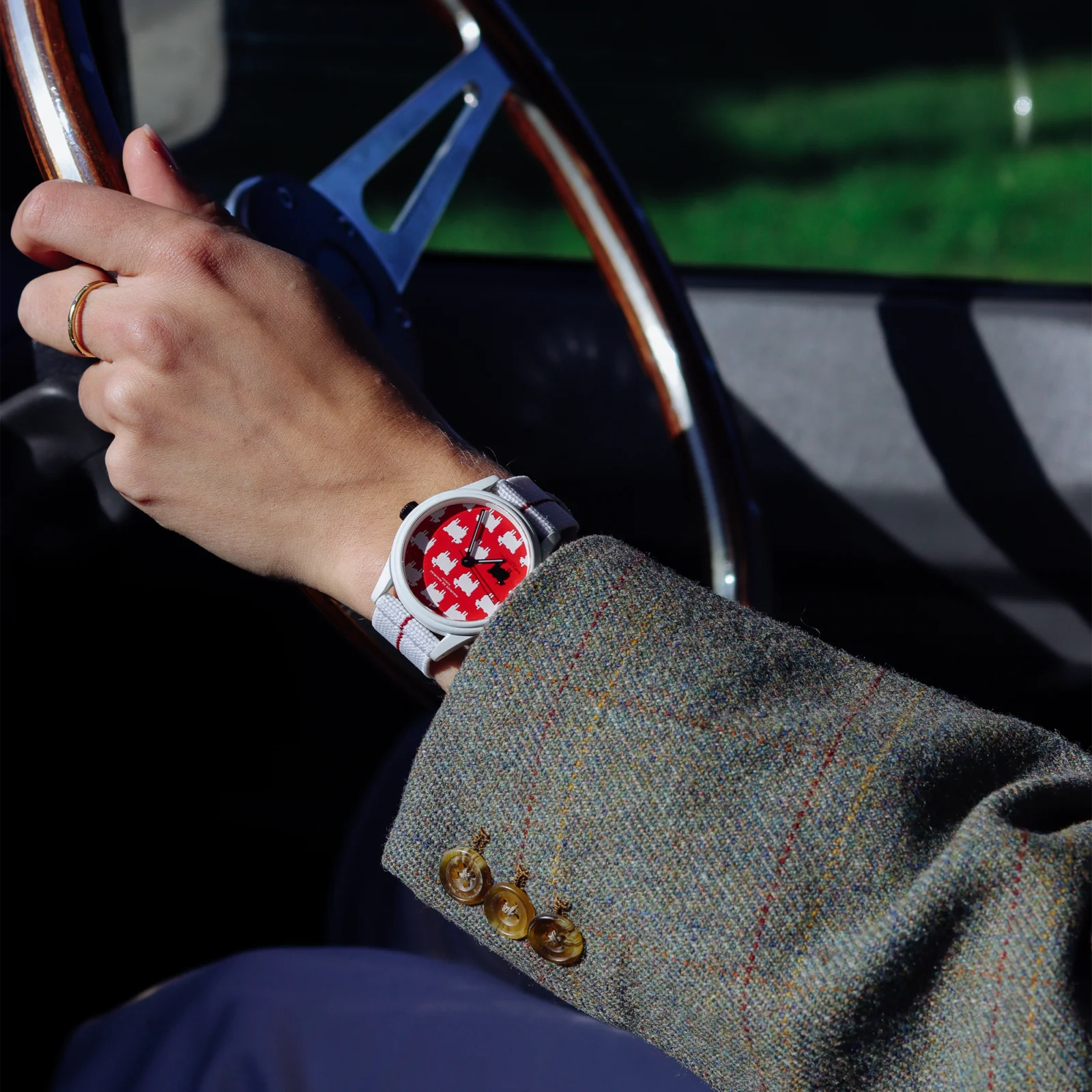 Maurice de Mauriac und Warm & Wonderful bringen das von Lady Di getragene und ikonische „Black Sheep“-Muster auf einem von Carlton DeWoody entworfenen gemeinsamen Zeitmesser zurück.