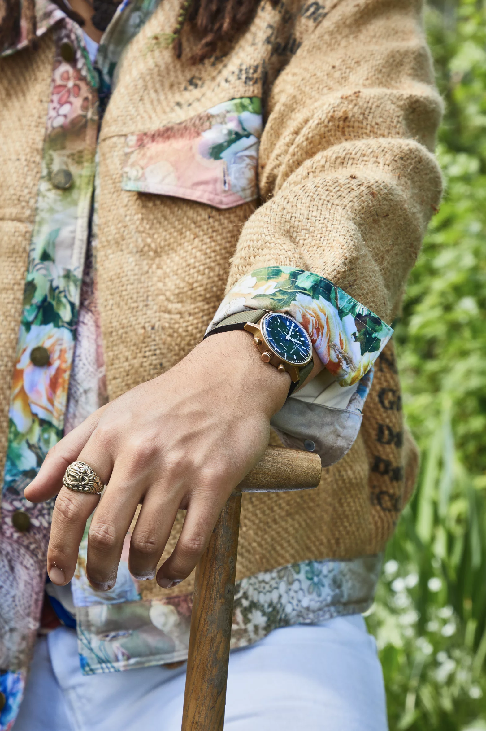 Noah trägt eine L3 in Bronze mit diesem besonderen grünen Zifferblatt. Er liebt die Bronze, weil sie nach kurzem Tragen schon beginnt zu leben, immer haptischer wird. Haben die Dreifuss gerade ihre Adidas Trainingsanzugsphase und treffen auf den eher dandyhaft gekleideten Rechsteiner, weiß man, hier haben sich Extreme gefunden. Im Genuss sind sie sich nah und bei den Werten, auf deren Basis sie die Genüsse schaffen – eine gute Zeit bei einem aussergewöhnlich gutem Essen – ein gutes Leben, das von einer besonderen Uhr in die Zeit schönster Genüsse aufgeteilt wird.