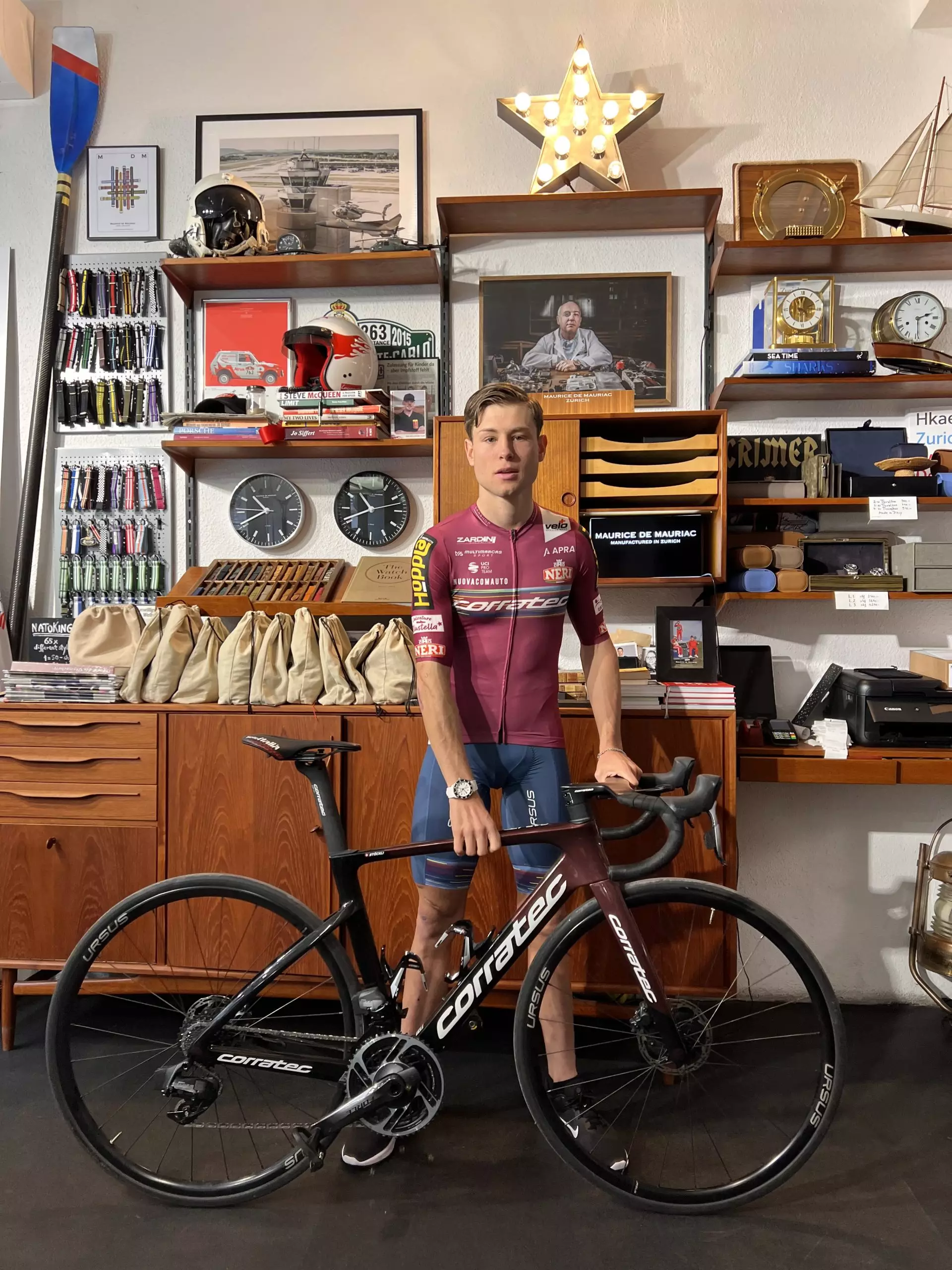 Manchmal holen wir schon zahlreiche Uhren aus den Tresoren und lassen die einfach mal alle anlaufen, um uns auf das wunderbare Surren einzustimmen. Heimlich träumen wir dann vom Trikot des Führenden Fahrers, dem Maglia Rosa. Bucket hats in Rosa mit unserem Racing Nato Strap Band als Hutband liegen schon für den 6.5. bereit, wenn wir uns zusammen mit den Fahrern in die Strecke stürzen. Wir fiebern dann für einen Schweizer Fahrer in einem italienischen Team, das den Namen eines Deutschen Unternehmens trägt, das für die Fahrräder verantwortlich ist, die man für derartige Höchstleistungen braucht – Corratec. Diese Räder sind absolute Meisterwerke, feinmechanische Höchstleistungen für ganz große Auftritte bei solchen Rennen.