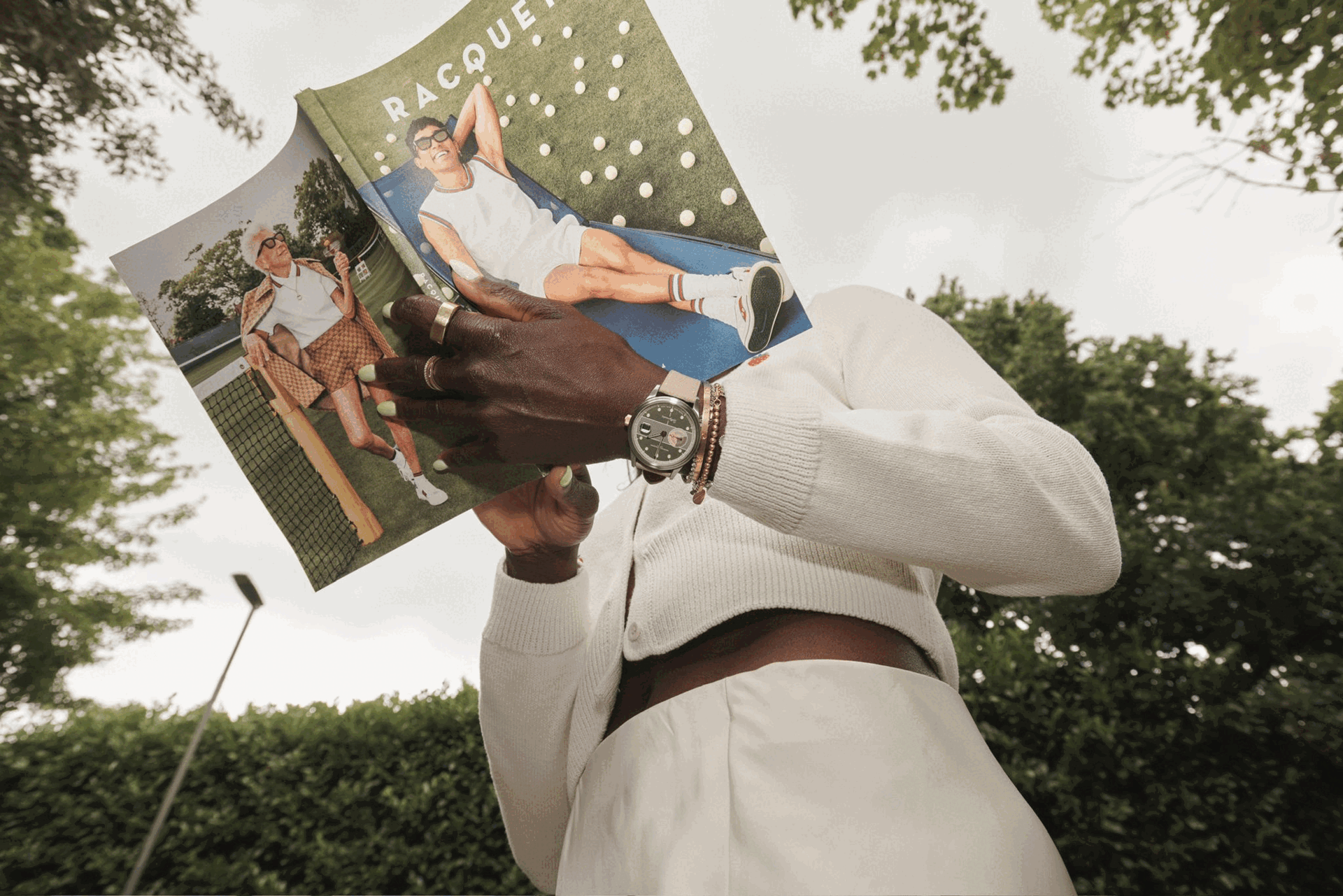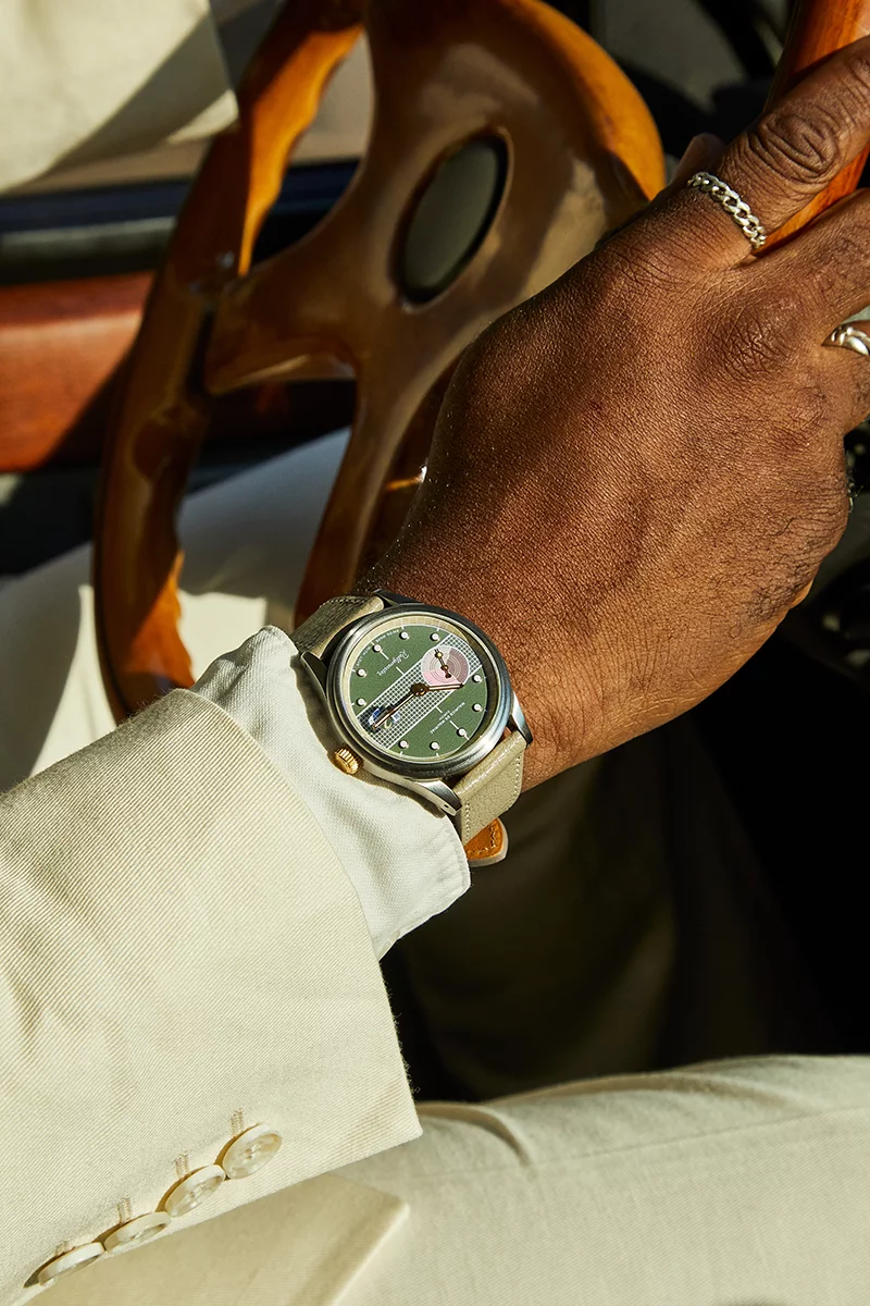 Carlton DeWoody ist extrem, er findet im Kleinsten noch etwas Kleines, das es zu verbessern gilt. Das sieht man allen Rallymaster Modellen an. Die Rallymaster III ist dem Grand Slam in Wimbledon gewidmet – der Grass Saison. Die Zeit spielt auf der Rallymaster deshalb auf grün. Die Grafiksprache des Zifferblattes hat Anklänge im Vintagetennis, man entdeckt den Tennisball, das Netz, den Court und findet darin auch die Tenniskultur von heute. Damit die Rallymaster III sowohl auf dem Court, als auch neben dem Court für grosse Auftritte sorgt, hat die Uhr zwei Uhrenbänder.